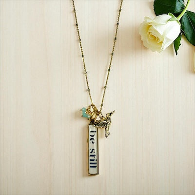 "BE STILL" Sterling Silver & 14kt Vermeil Necklace w/ Chalcedony Rondelles